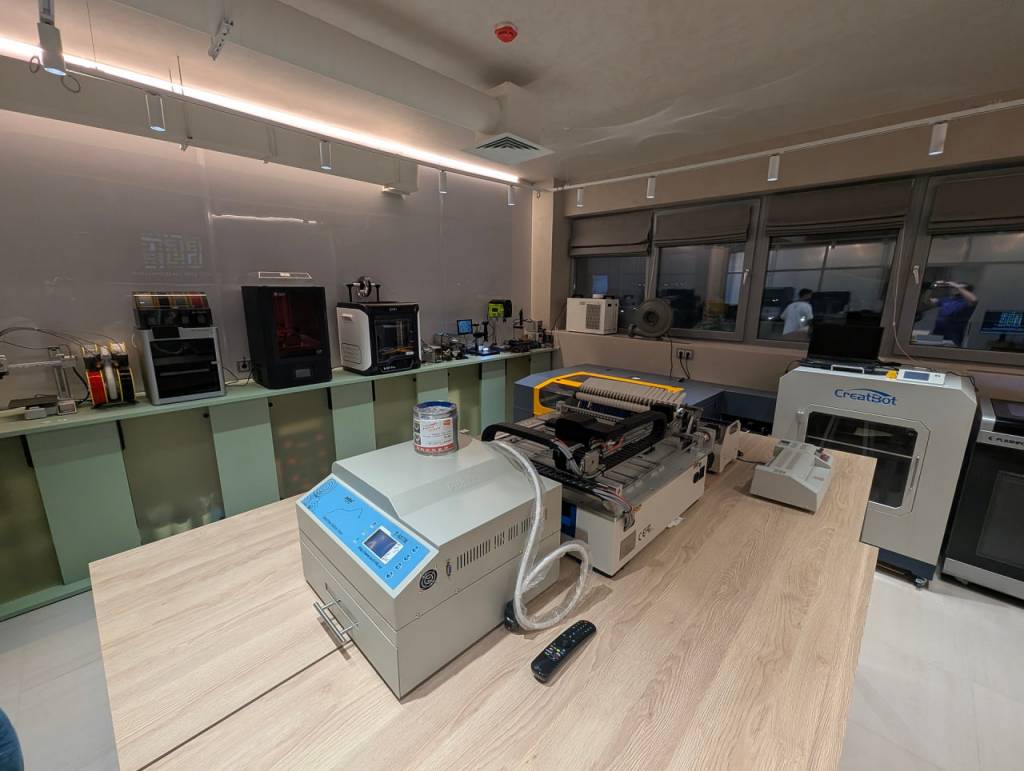 Резиденты могут воспользоваться современными компьютерами и графическими планшетами для трехмерного моделирования объектов, разработки и симуляции электронных схем. Набор оборудования для прототипирования печатных плат позволяет организовать изготовление небольших серий электронных устройств, от трассировки печатной платы и экспонирования фоторезиста до автоматической установки SMD-компонентов и оплавления припоя в специальных печах с отмывкой флюса, а наличие краскопультов IIWATA со всеми необходимыми аксессуарами и палитрой красок позволяет придать напечатанным моделям корпусов законченный и эстетичный вид.